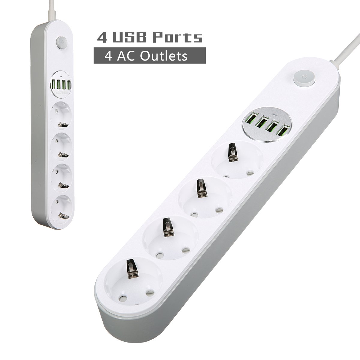 Multipresa Ciabatta Elettrica, Hizek Ciabatta USB con 4 Schuko Prese Elettriche e 4 Porte USB per Elettrodomestici ed Elettronica descrizione