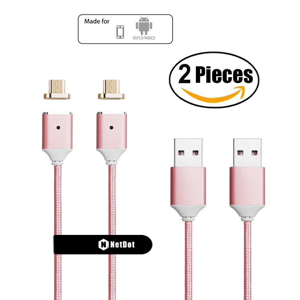 Netdot seconda generazione intrecciato magnetica cavo di ricarica USB con connettore di 1 Micro-USB per Samsung Galaxy S2 S3 S4 S6 , note 2345, LG G4 G3, Sony Xperia Z5 Premium Compact etc ( 2 pezzi rosa) Recensioni