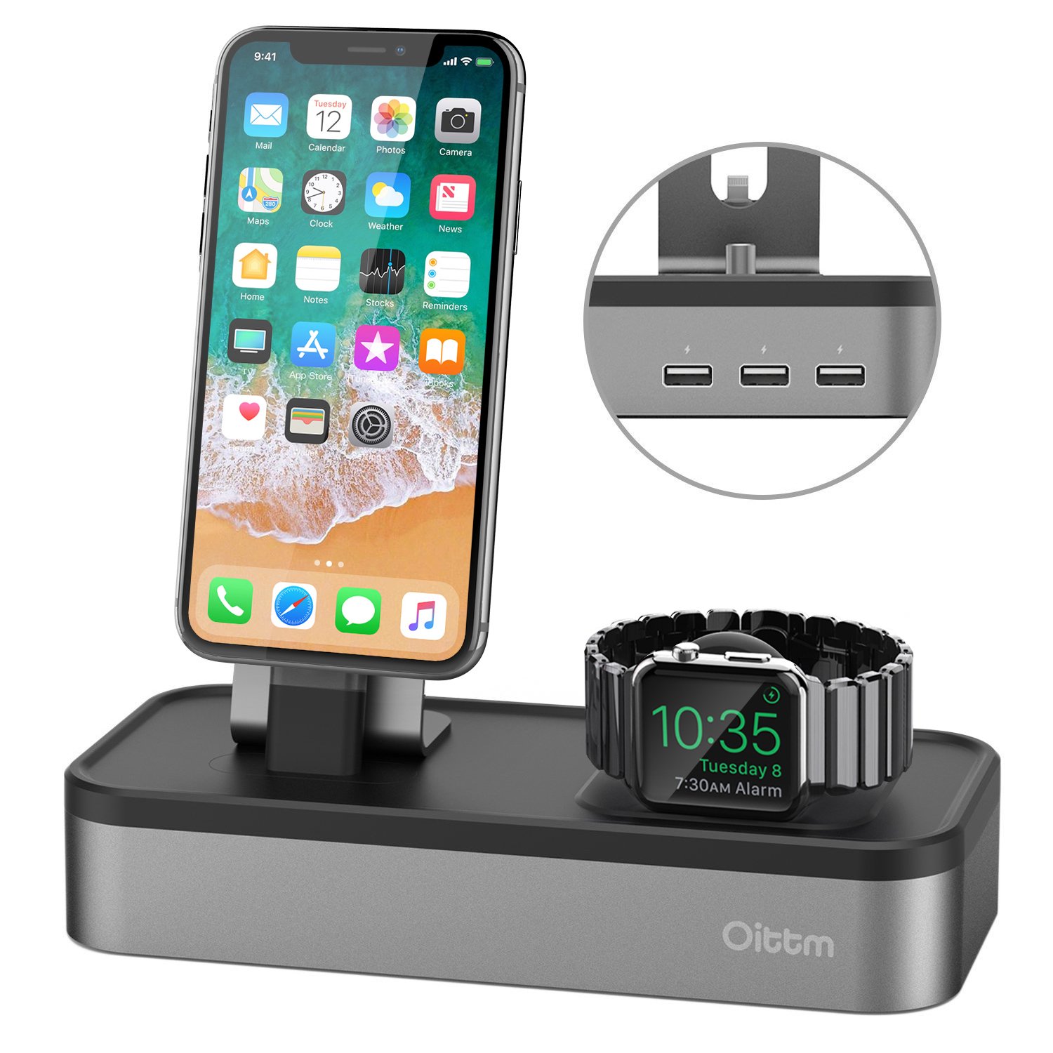 Oittm 5 Porte USB Supporto Ricarica per Apple Watch Series 3 Apple Watch Series 1 Apple Watch Nike+ iPad Mini iPod Apple Pencil Siri Remote iPhone 7 Plus iPhone 8 Plus iPhone X Ect. (Grigio) Recensioni